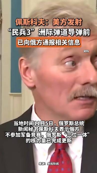 另据环球时报消息,当地时间11月5日,俄罗斯总统新闻秘书佩斯科夫表示,俄方不参加军备竞赛,俄罗斯“三位一体”的核力量已完成更新。