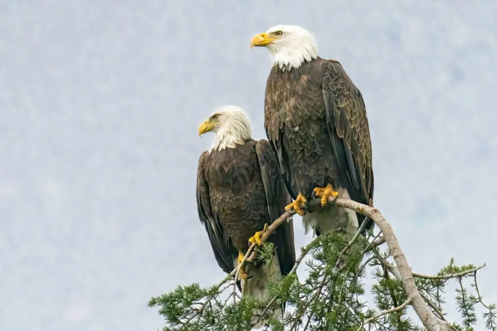 秃鹰是美国的国鸟,是天空中的强大捕食者。这些鸟体重可达6.4公斤,翼展可达2.3米。它们的力量尤其体现在爪子上,能够施加高达181公斤/平方厘米的压力。这种握力使它们能够在飞行中携带重达1.8公斤的猎物,并且有人观察到它们能从水中抬起更重的猎物。秃鹰强壮的翅膀使它们在攻击猎物时能够以161千米/时的速度俯冲。