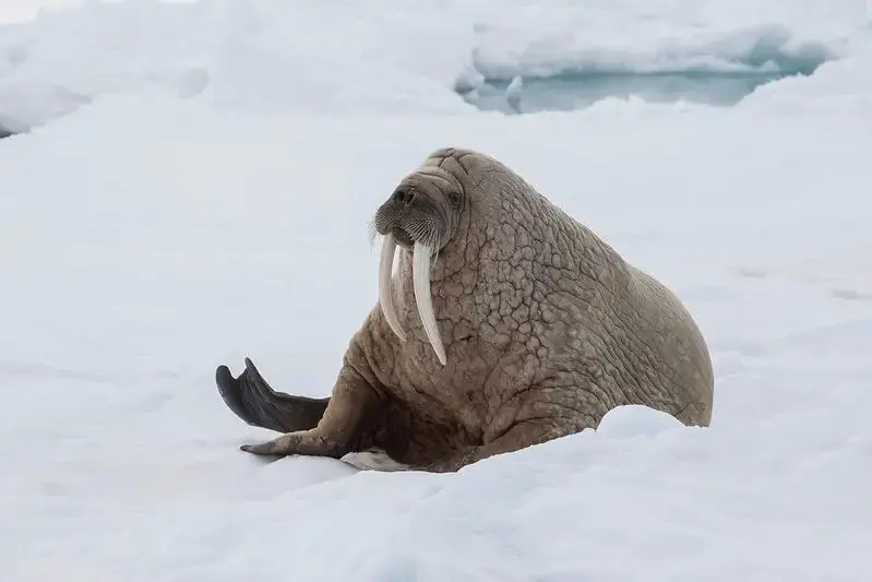 海象是大型海洋哺乳动物,以其惊人的力量而闻名。成年雄性体重可达1814公斤,拥有长达0.9米的獠牙。它们强壮的身体使它们能够将自己从冰冷的水中拖到浮冰上,这需要巨大的力量。海象不仅用獠牙进行战斗和确立优势地位,还将其作为工具,在冰上凿出呼吸孔,并将自己拖到浮冰上。