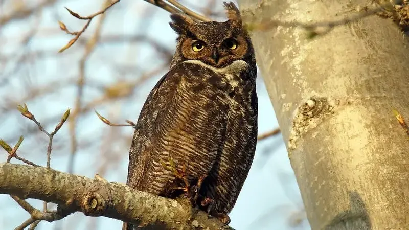 大角猫头鹰是沉默但致命的猎人,凭借其特殊的羽毛,能够以近64千米/时的速度在几乎完全寂静的环境中飞行。它们出色的听觉和视觉使它们能够在完全黑暗中定位猎物。这些猫头鹰的力量不仅限于爪子;它们强壮的翅膀使它们能够带着沉重的猎物从站立位置起飞。大角猫头鹰已知会捕食臭鼬、兔子甚至其他猛禽等大型动物,展示了它们作为北美顶级鸟类捕食者的地位。它们的适应性和力量使它们能够在从茂密森林到城市地区的各种栖息地中茁壮成长。