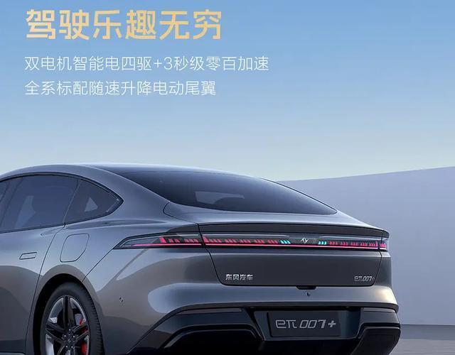 动力上,eπ007+配备的是双电机智能电四驱系统,官方说零百加速能做到3秒多。这个性能水平,已经摸到了一些百万级性能跑车的边儿。而且它还全系标配了随速升降的电动尾翼,车速上来的时候能提供下压力,增加行驶稳定性,看着也特别帅。