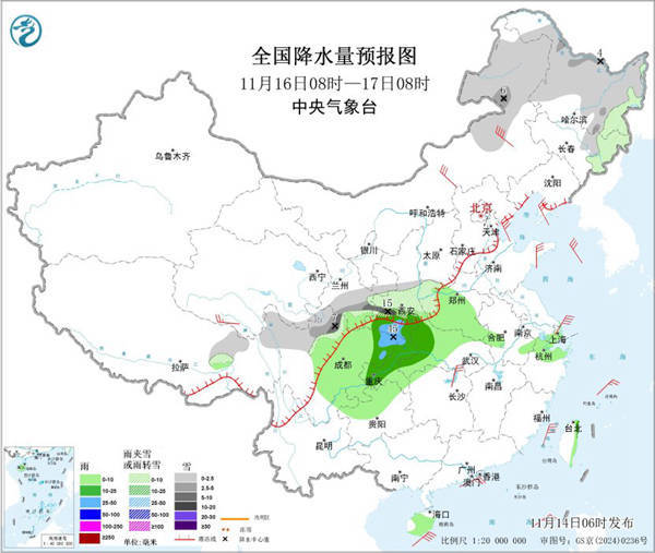 后天,内蒙古东部、东北地区东部和北部、西藏东北部、西北地区东南部、川西高原北部等地部分地区有小到中雪或雨夹雪,其中,秦岭高海拔地区等地局地有大到暴雪。西北地区东南部、西南地区东部、江汉大部、黄淮西部、海南岛、台湾岛东部等地部分地区有小到中雨,其中,陕西南部、四川盆地东北部、重庆东北部等地部分地区有大雨。