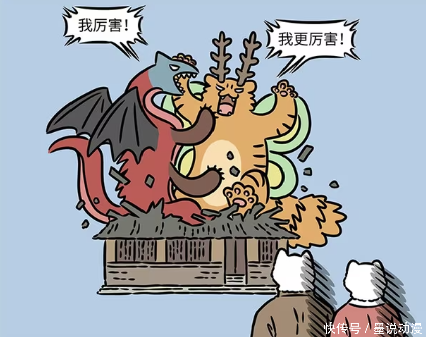 此时九月体型变大,尾巴也变得超大,还长出蝴蝶的尾巴。这已经不属于动物的范畴,完全就是怪兽。十一月也是如此,身体更是变成西方龙的模样,还长出一对黑龙翅膀。此时九月和十一月的家已经被两兄妹拆了,爸妈就算回来,也为时已晚。没想到才离开一小会的时间,家就快变成废墟。