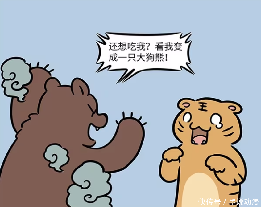 接下来十一月也用化形术,让自己变成大狗熊。十一月的化形术还是比较厉害,不过也因为自身太小,所以这头熊看起来也没那么凶残。九月变成的老虎,似乎被十一月变成的大狗熊吓住。不过九月可不会认输,她还会继续变化。