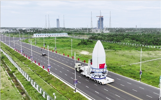 11月11日,长征八号甲遥五运载火箭在海南商业航天发射场成功实施转运,计划择期发射。长征八号甲运载火箭由中国航天科技集团有限公司一院抓总研制,作为长征八号运载火箭的“升级版”,该型火箭借助模块化组合与新材料应用,大幅提升了运载能力。图为11日拍摄的长八甲遥五火箭整流罩转运现场(无人机照片)。 新华社记者 陈凯姿 摄