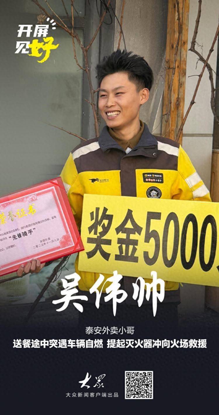 对于此次受到的关注,吴伟帅并没有预料到。“我当时着急送单子,就想着灭完就走,没有想到有人拍下了视频还发到了网上去。还是我朋友告诉我有人发了救火视频,我才知道的。”吴伟帅说,自己只是个普通人,只是做了觉得该做的事,碰见了就不会袖手旁观。