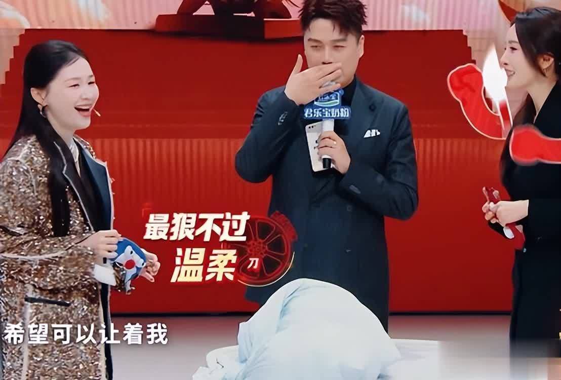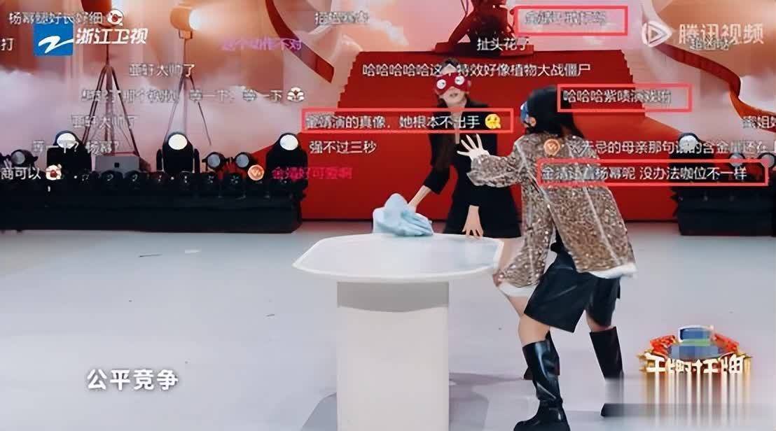 比如在用不同人设表演环节,杨幂和金靖表演的情人与秘书之间的针锋相对进入了白热化阶段,俩人争抢一件外套的情节甚至有些进行不下去,难以收尾了。