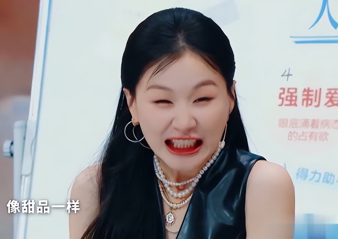 比如在表演“甜系”人设时,金靖故意捏着嗓子发嗲,随后表情像是吃到了酸杏似得抽搐又夸张,这哪里是表演“甜妹”,分明就是给观众添堵来了。