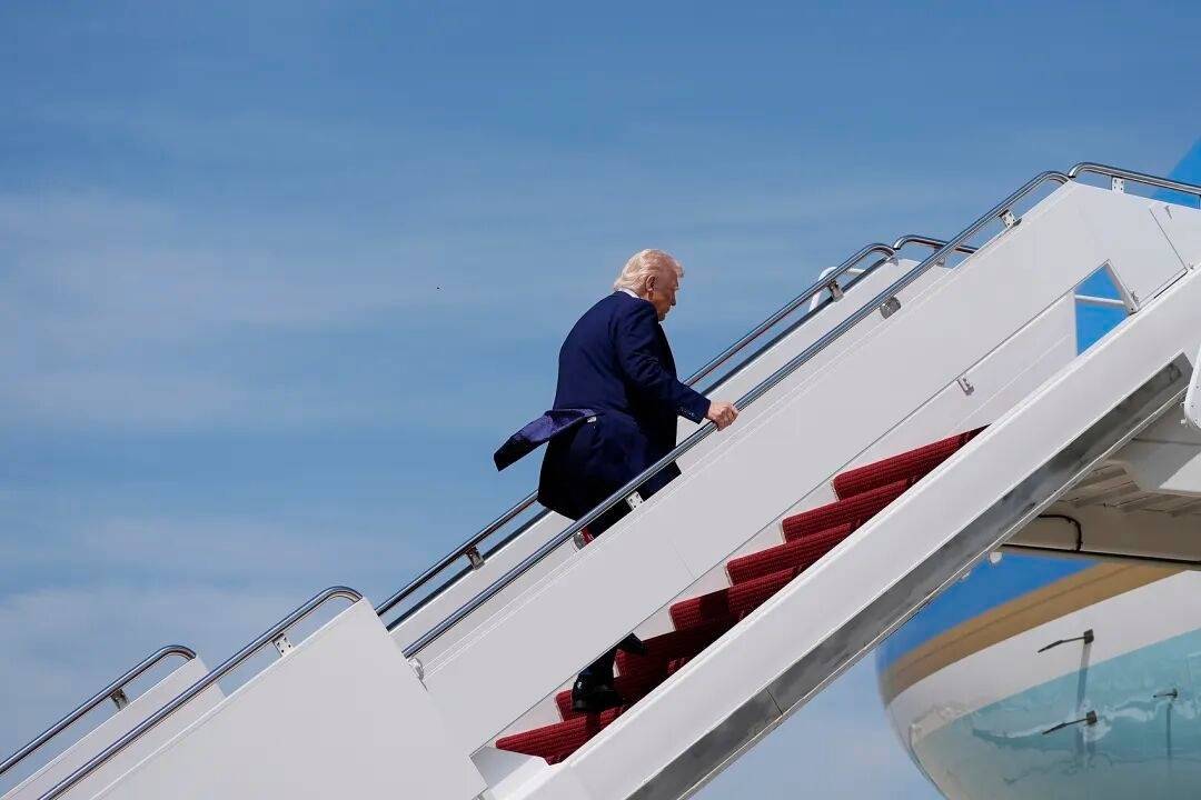 当地时间19日,特朗普乘坐“空军一号”离开佛罗里达州。图源:美媒